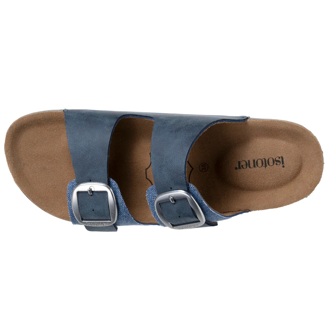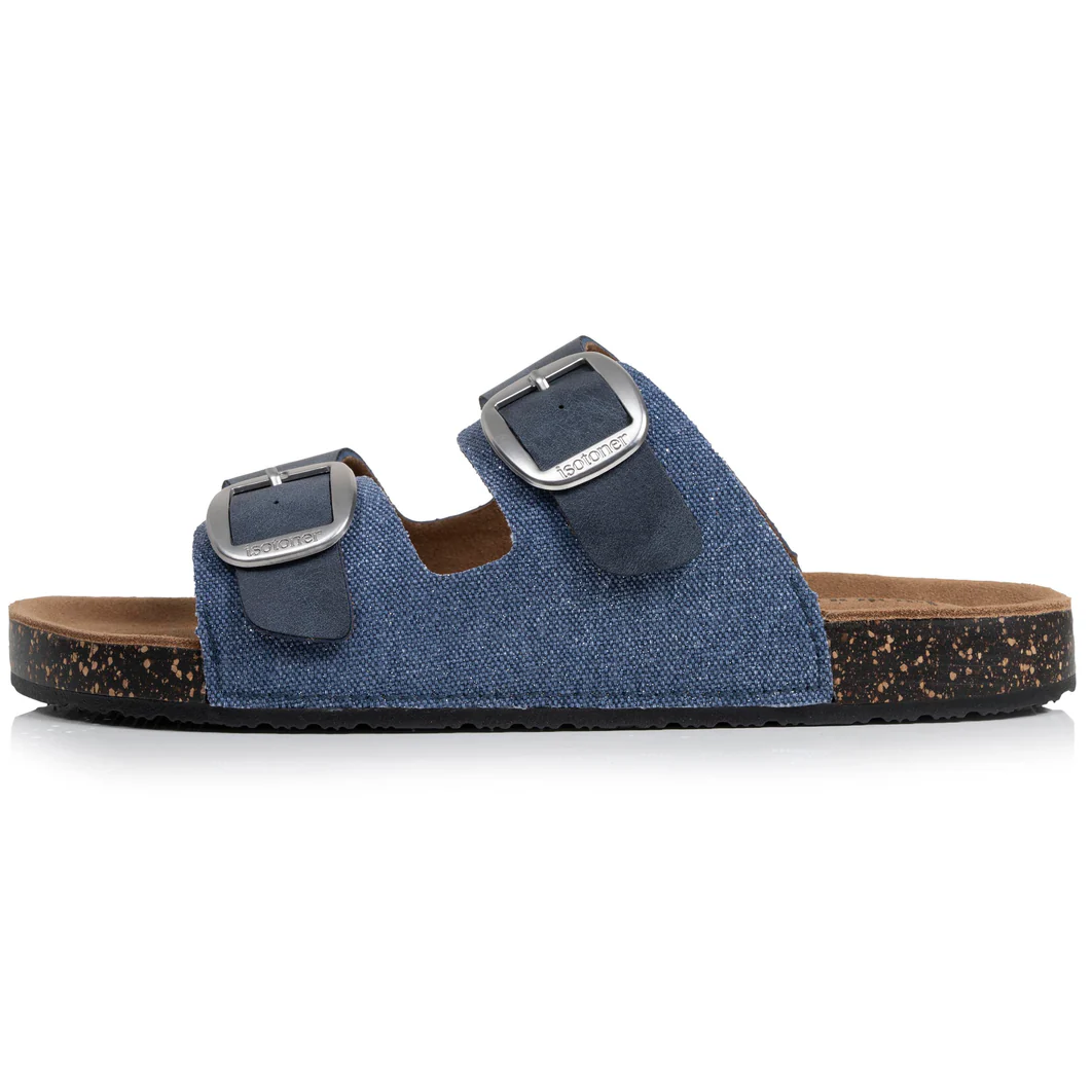 Cette mule sandale double bride de coloris Bleu denim pour femme allie style, technicité et confort. Le patch EVERYWEAR™ présent sur la première de propreté permet un amorti et un confort optimal. La semelle intérieure est en cuir qui a bénéficié d’un tannage végétal. La semelle extérieure de cette chaussure sandale claquette pour femme est ultra souple et légère pour s’adapter à chacun de vos pas. Les fermetures doubles brides vous permettent d’adapter la largeur de la chaussure, vous permettant de l’ajuster à votre pied. Voici une sandale pratique par excellence, à enfiler rapidement et à porter en extérieur comme en intérieur.