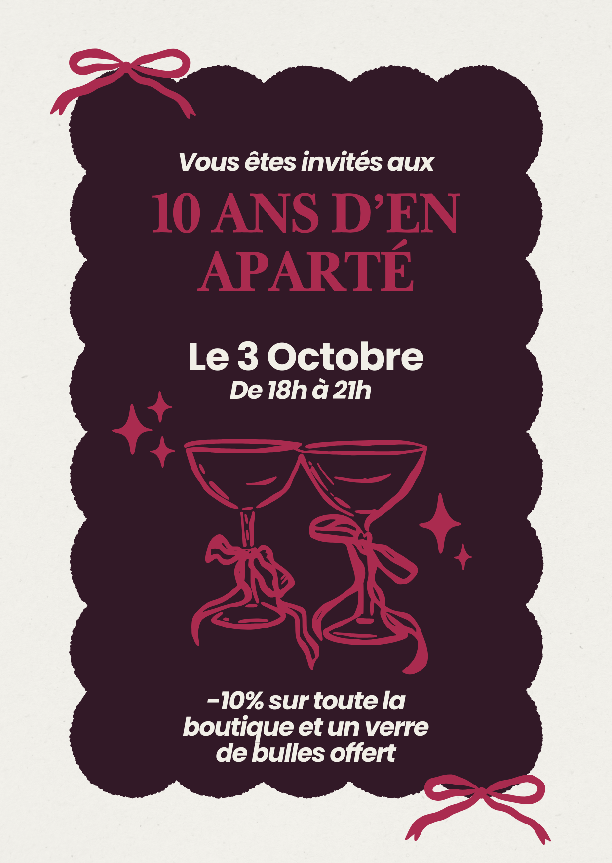 Le vendredi 3 octobre, En Aparté souffle ses 10 bougies 🎉.